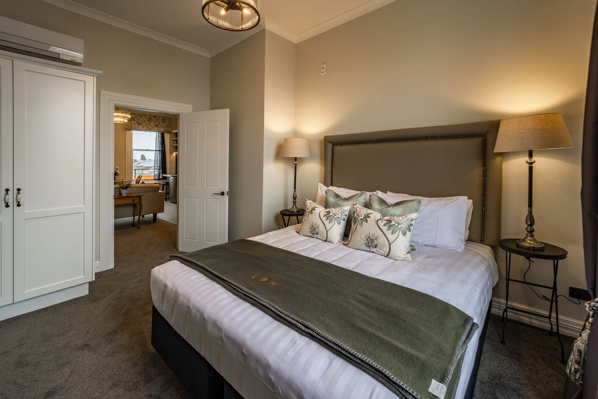 Connected to the legacy of the Heaton family, this apartment is designed for couples or solo travellers. Heaton offers a king bedroom and a relaxed living space that invites you to slow down. The palette is calm, the mood unhurried and is an easy place to return to after a long day.